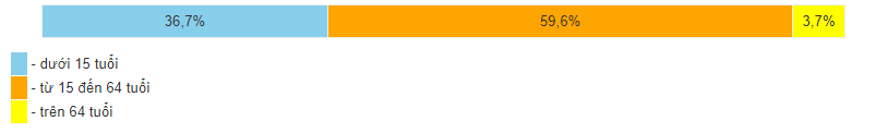 Tính đến đầu năm 2017 theo ước tính của chúng tôi, Lào có phân bố các độ tuổi như sau: 36,7% 59,6%