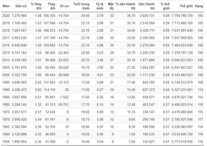 Nhân khẩu Lào 2020 Tính đến ngày 31 tháng 12 năm 2020, dân số Lào ước tính là 7.327.884 người, tăng 106.100 người so với dân số 7.222.942 người năm trước. Năm 2020, tỷ lệ gia tăng dân số tự nhiên là dương vì số người sinh nhiều hơn số người chết đến 118.749 người. Do tình trạng di cư dân số giảm -12.649 người.