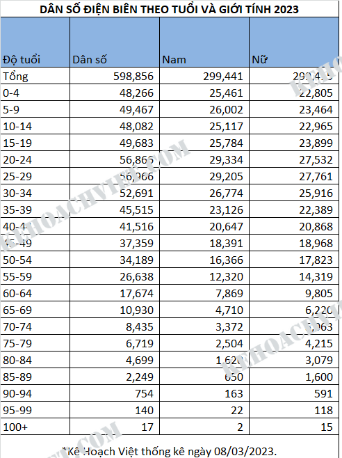 Thống kê dân số Tỉnh Điện Biên theo tuổi và giới tính 2023